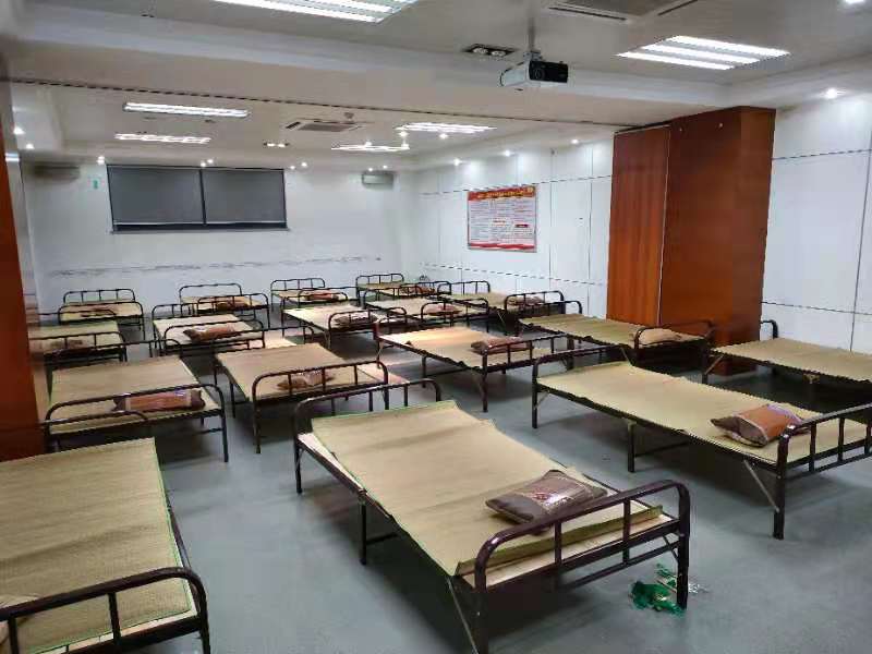 在前一日下午,物流中心即向員工征求了集中住宿進行自主隔離的意見,尤其是物流中心的領導們帶頭,各經理及主管積極響應,物流員工紛紛報名。不少人家里存在這樣那樣的困難,但聽說是呵護國控揚州這個共同的家園,大家都表示要克服一切困難,堅決參加。8月3日,鑒于嚴峻的形勢,公司決定在公司內部搭建簡易床鋪。